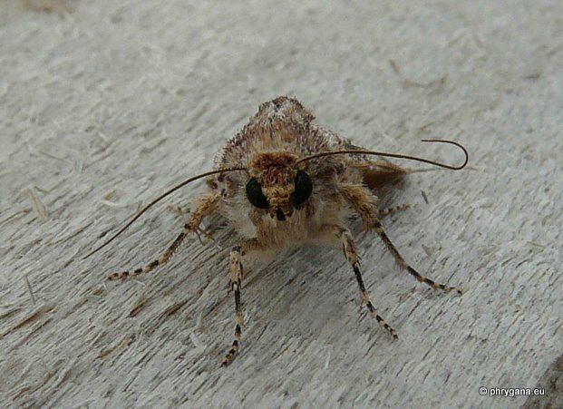 | Aspect général: envergure: 34-44 mm. Couleur de fond brun beige, veines noires; réniforme bien marquée; pattes annelées; ligne de triangles noirs à la frange. Antennes du mâle pectinées. Antennes de la femelle filiformes. Ailes postérieures blanches. |